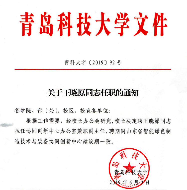 关于王晓原同志任职的通知
