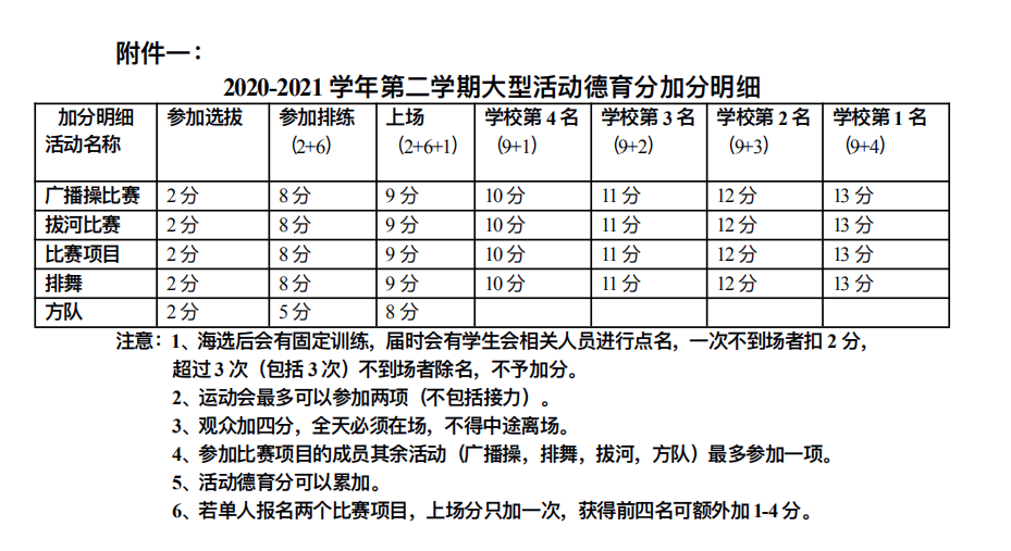 2.人员要求:每个项目最终确定41人参赛(男女各20人,领队1人),以训练表现和最终选拔成绩作为参考