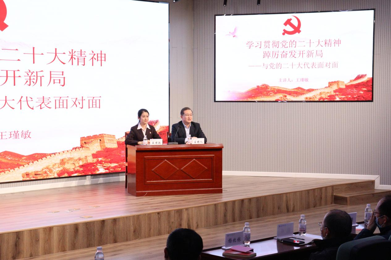 党的二十大代表王瑾敏以《让青春在火热实践中绽放绚丽之花》为题作党的二十大精神宣讲。她从自身参加党的二十大的经历感受出发,用真切的情感、鲜活的事例、生动的语言回顾了党的二十大盛况、系统阐释了党的二十大精神内涵,分享参加党的二十大的所见所感所思所悟,展示了奋斗在基层一线、在平凡岗位上铸就不平凡业绩的二十大代表的闪光形象。宣讲主题鲜明、内涵丰富、思想深刻、鼓舞人心,为pg电子官方网站干部师生带来了丰厚的理论滋养。作为亲身经历党的二十大盛会的代表,王瑾敏结合自身实际,勉励学院师生要学深悟透报告精神、身体力行做好贯彻落实,并以青年人的视角鼓励学院师生要坚定理想信念,敢想敢为,善作善成。