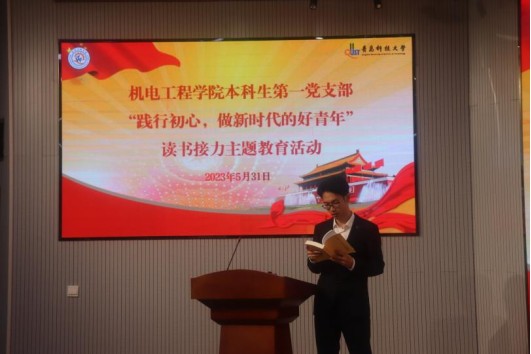 为扎实开展学习贯彻习近平新时代中国特色社会主义思想主题教育,筑牢信仰之基、补足精神之钙、把稳思想之舵pg电子官方网站本科生第一党支部开展了“践行初心,做新时代的好青年”读书接力主题教育活动。本次会议由本科生第一党支部书记于超主持,全体党员同志参加。