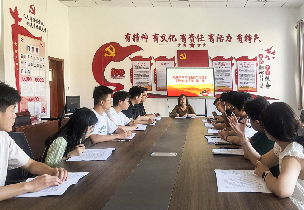 6月21日pg电子官方网站本科生第二党支部于机电楼529会议室开展“学习贯彻习近平新时代中国特色社会主义思想主题教育”读书会(第二期),支部预备党员参加了此次会议。