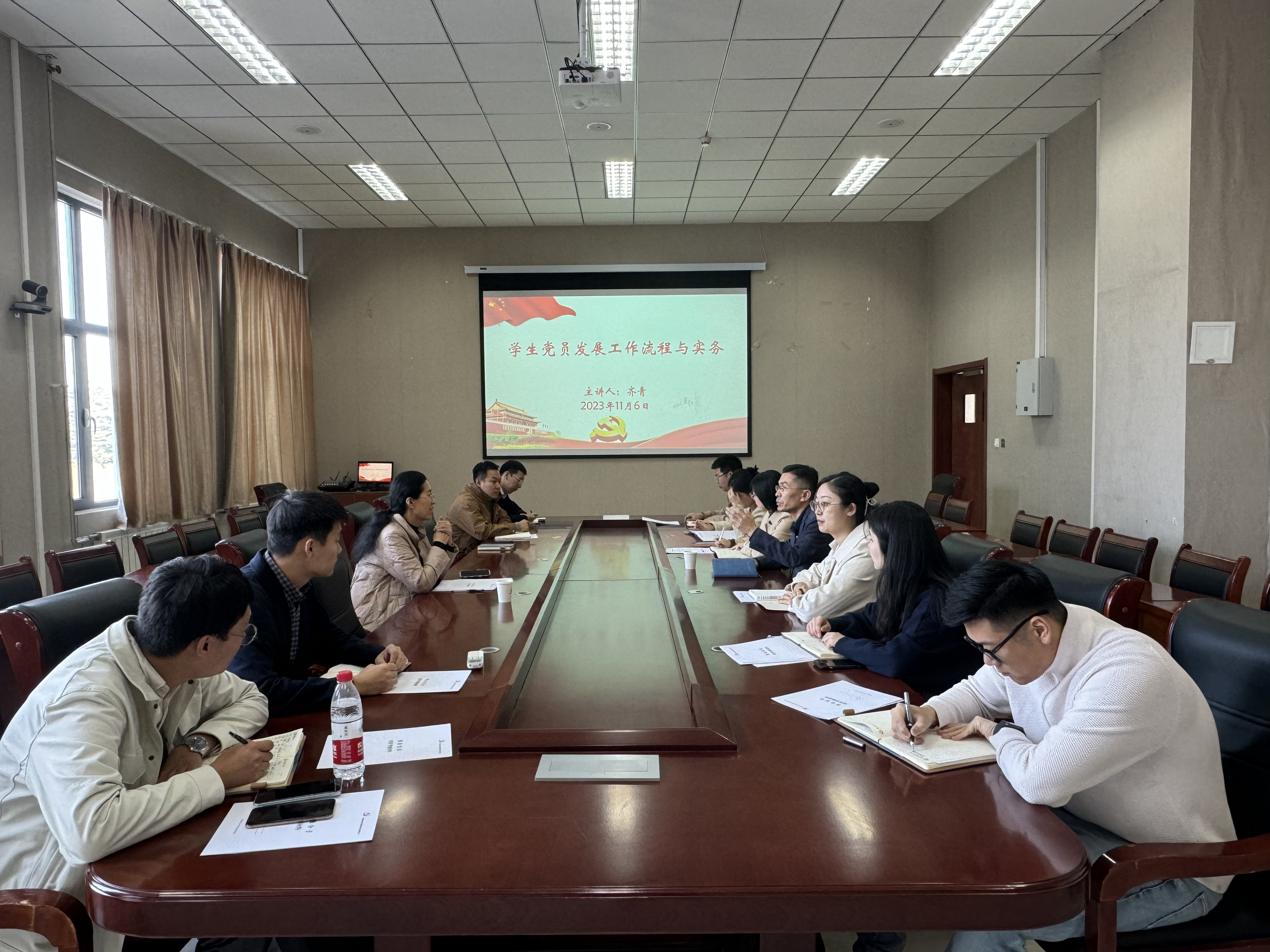 齐青从学生党员发展流程、材料撰写等方面为学院辅导员进行详细讲解和培训,就党员发展等工作存在的常见问题一一提示,并为辅导员针对性答疑解惑。同时指出,辅导员和支部书记要明确学生党员发展工作的重要性,始终把政治标准放在首位,严格发展程序和纪律,扎实做好学生党员发展和组织关系转接工作。