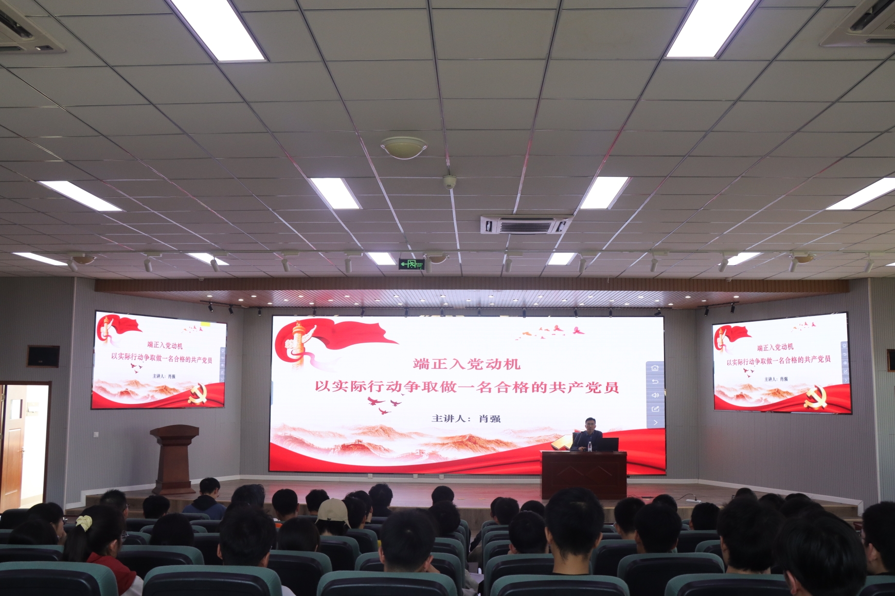 为了加强对入党积极分子的培训工作,深化党的思想引领,进一步提高入党积极分子的基础理论素养,4月18日,pg电子官方网站党委副书记兼副院长肖强为学院2023年春季学期入党积极分子讲授了主题为“端正入党动机,以实际行动争取做一名合格的共产党员”的专题党课,104名学员参加了党课。