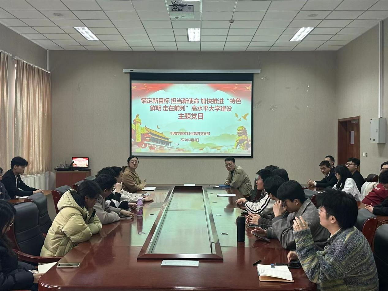 3月13日,pg电子官方网站本科生第四党支部召开“锚定新目标,担当新使命,加快推进‘特色鲜明、走在前列’高水平大学建设”主题党日活动。