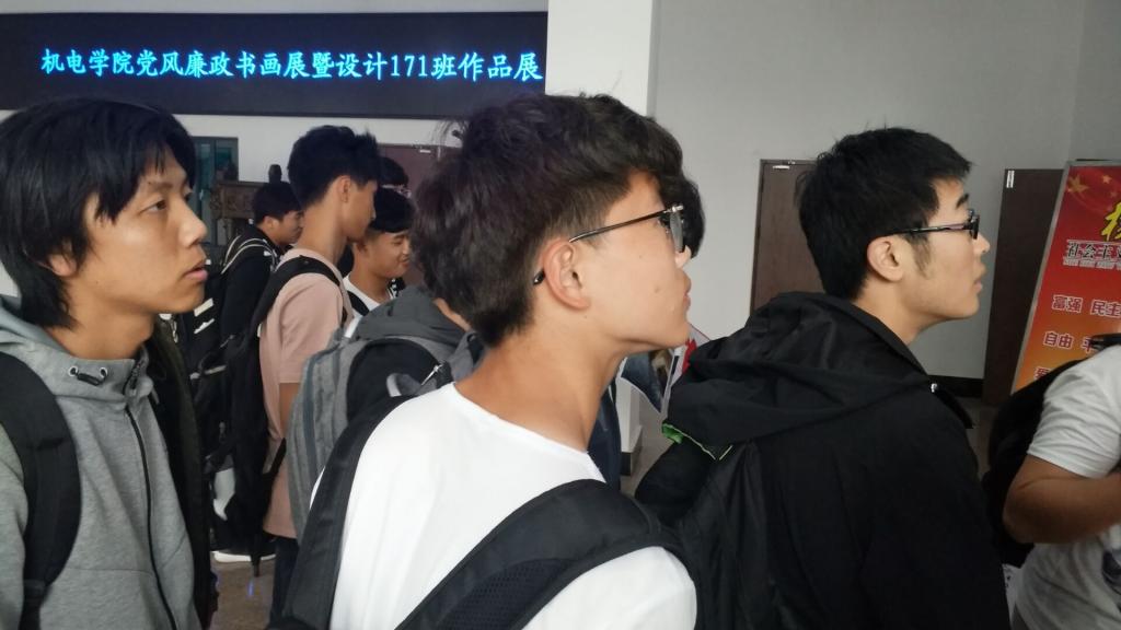 为了贯彻全面从严治党要求,认真学习宣传党的十九大精神,切实加强党风廉政建设,进一步增强全院党员领导干部遵规守纪意识,5月15日至20日,由pg电子官方网站党总支主办,pg电子官方网站分团委、工业设计171班承办的pg电子官方网站党风廉政书画展暨设计171班作品展在pg电子官方网站大厅展出。
