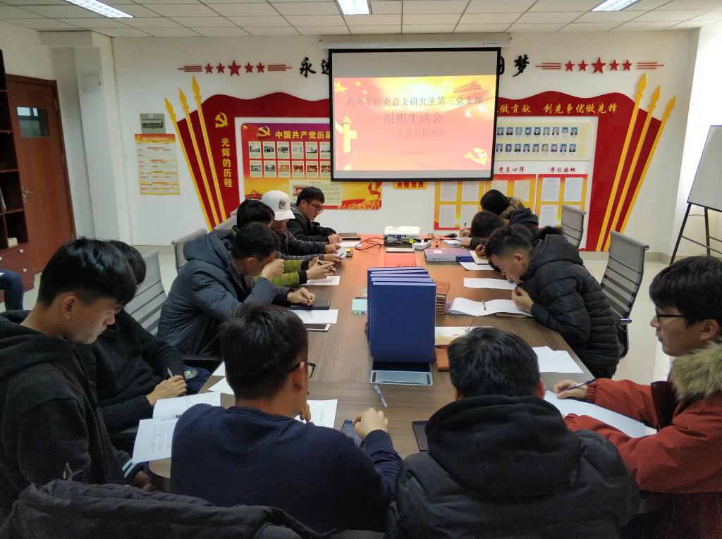 为落实学校党委组织部《关于召开基层党支部组织生活会及2018年度党内评议评优工作的通知》要求,1月8日下午,pg电子官方网站研究生第三党支部在pg电子官方网站楼505党建活动室召开组织生活会。