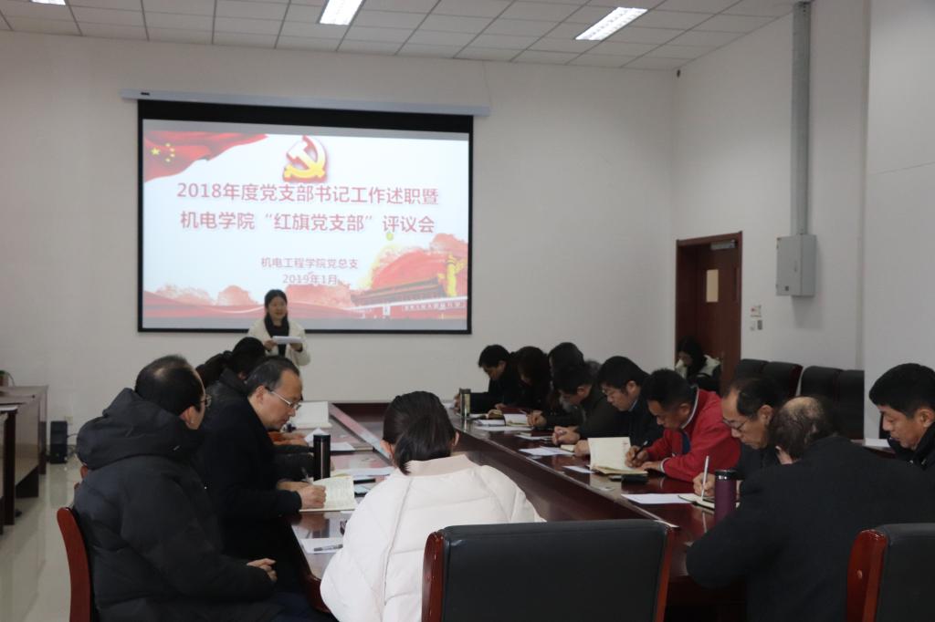 根据上级有关文件精神和相关部署要求,1月18日上午,pg电子官方网站在机电大楼518会议室举行2018年度党支部书记工作述职暨pg电子官方网站“红旗党支部”评议会。校纪委副处级纪检监察员赵丰、pg电子官方网站党总支委员及党建组织员鲁伟等参加了会议。会议由党总支副书记兼副院长王伟主持。