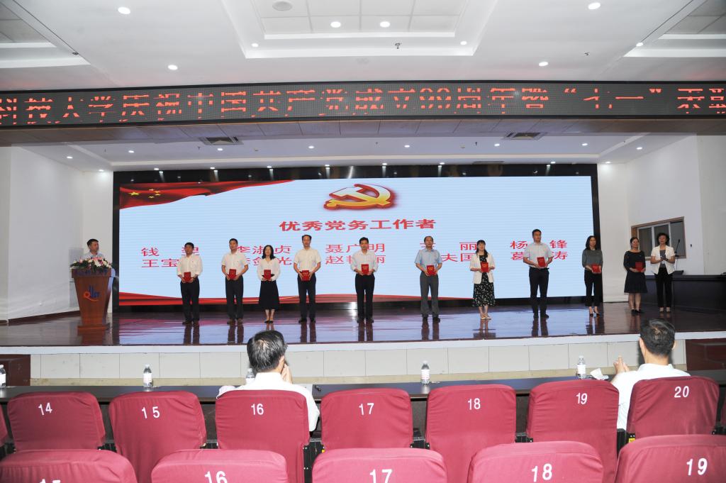 在隆重庆祝中国共产党成立99周年之际,为进一步弘扬抗疫精神,增强基层党组织凝聚力、战斗力、创造力,强化党员意识,表彰先进、树立典型,7月1日,pg电子官方网站庆祝中国共产党成立99周年暨“七一”表彰大会于崂山区第二报告厅隆重召开。校领导、院级党组织书记、副书记,分团委书记,党支部书记代表,党员代表,学生入党积极分子代表参与会议。