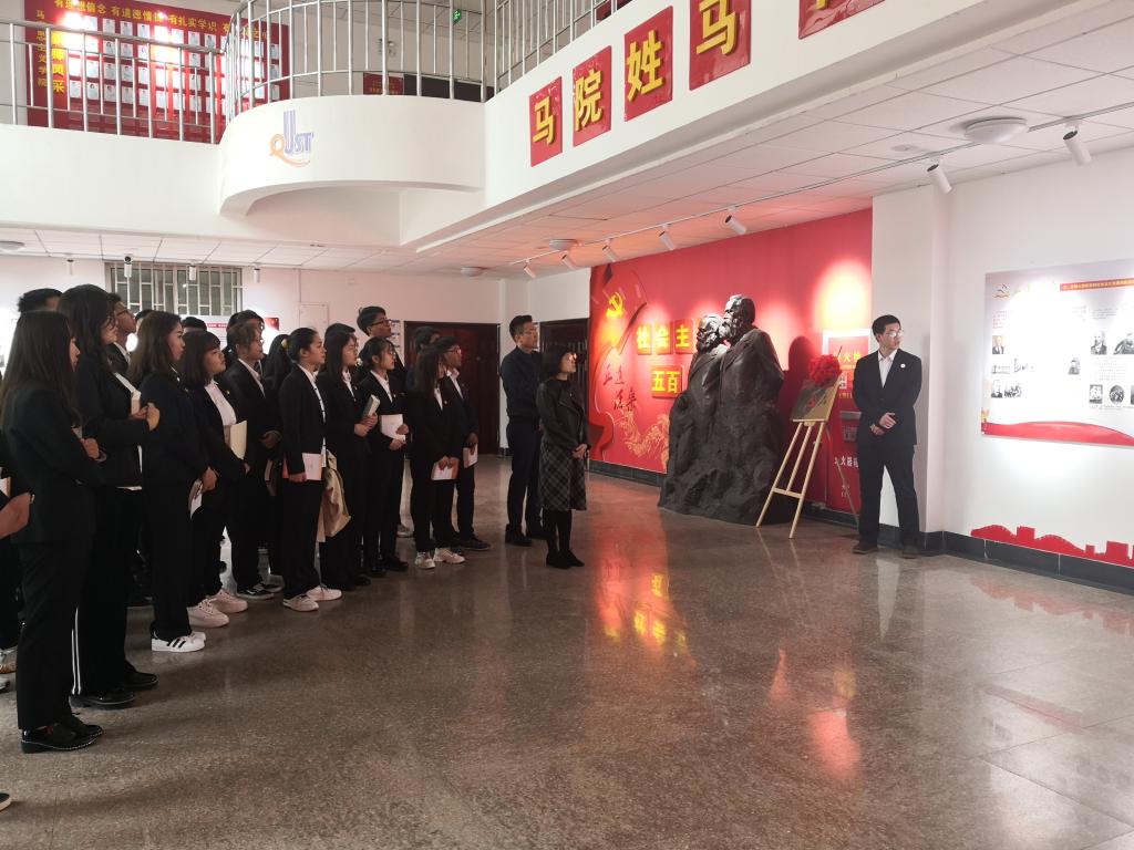 在马克思主义学院党史展区讲解员的带领讲解下,全体党员同志就社会主义五百年发展历程、新时代下习近平新时代中国特色社会主义思想中关于“共筑中国梦”、“做好意识形态工作”等方面的重要讲话精神和内容进行了深入学习。