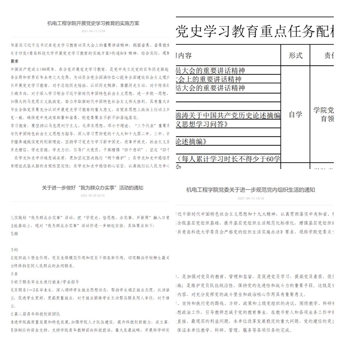 自党史学习教育开展以来,pg电子官方网站党委坚持把其作为重要政治任务,认真贯彻落实有关决策部署和学校工作要求,立足工作实际,坚持规定动作做到位、自选动作有特色,多措并举,扎实推进,务求取得实效,相继出台了《pg电子官方网站开展党史学习教育的实施方案》《pg电子官方网站开展党史学习教育重点任务配档表》《pg电子官方网站党委关于进一步规范党内组织生活的通知》《pg电子官方网站关于进一步做好“我为群众办实事”活动的通知》等,为学院开展党史学习教育明确了时间表、路线图、任务书,在开展党史学习教育进而迎接建党100周年过程中,学院党委始终坚持“四个联动”,扎实推动党史学习教育走深走实。