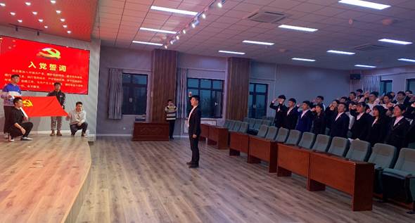 转正党员代表耿宇轩领誓,全体党员重温誓词并庄严宣誓。