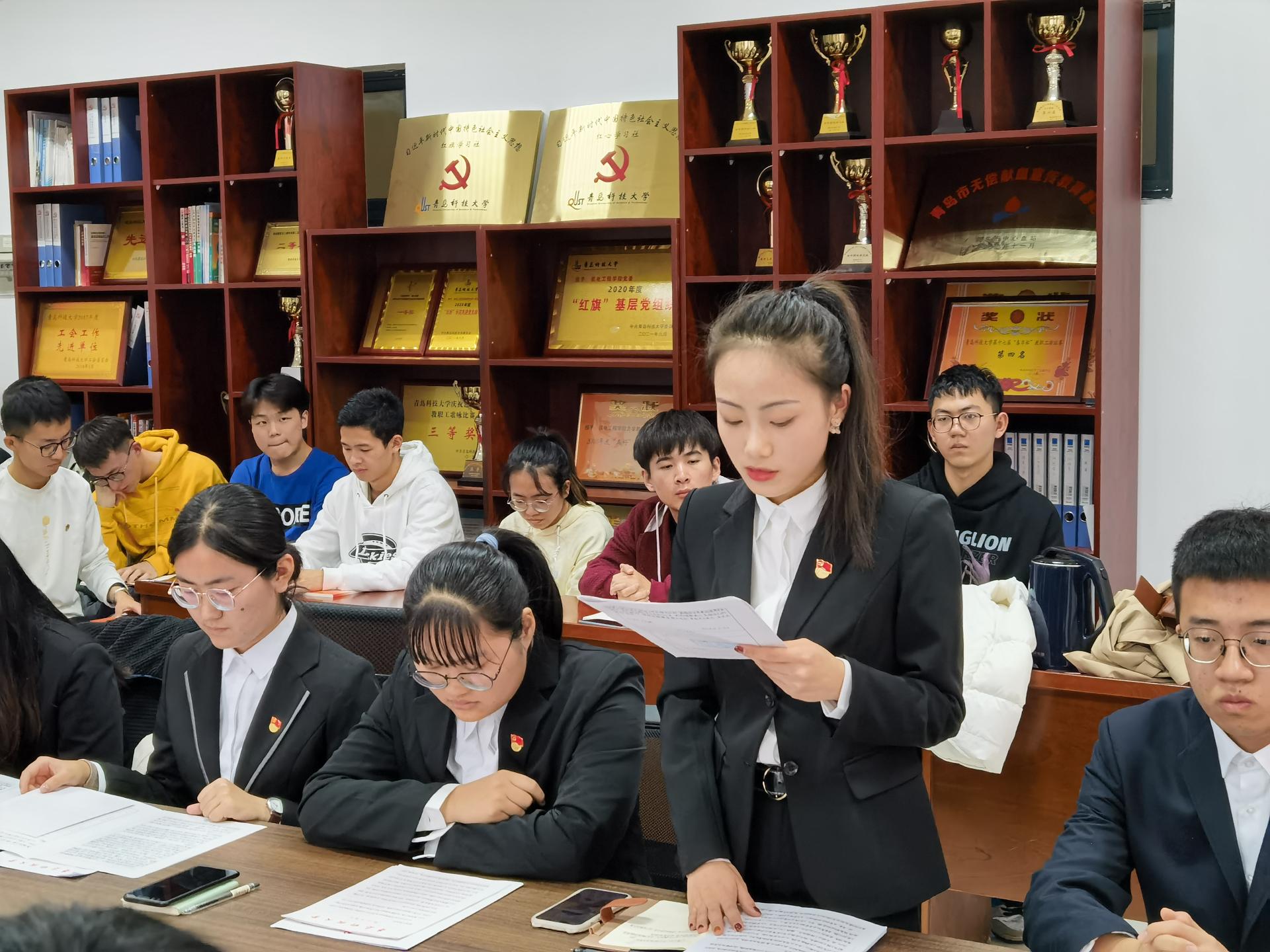 党支部先后两次召开支部预备党员转正大会。经预备党员向大会递交转正申请,支部总结表现并征求党内外群众意见,进行支部决议三个环节,大会接收车丞皎等11位同学为中共正式党员。