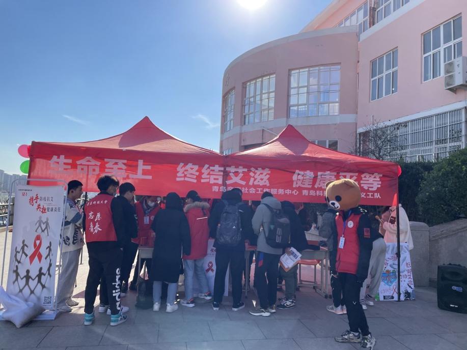 2021年12月1日,是第34个世界艾滋病日。在这个特殊的日子,pg电子官方网站团委志工部青尘义工队的志愿者们冒着凛凛寒风,在学校南苑食堂平台开展了“携手防艾,爱暖寒冬”志愿活动。