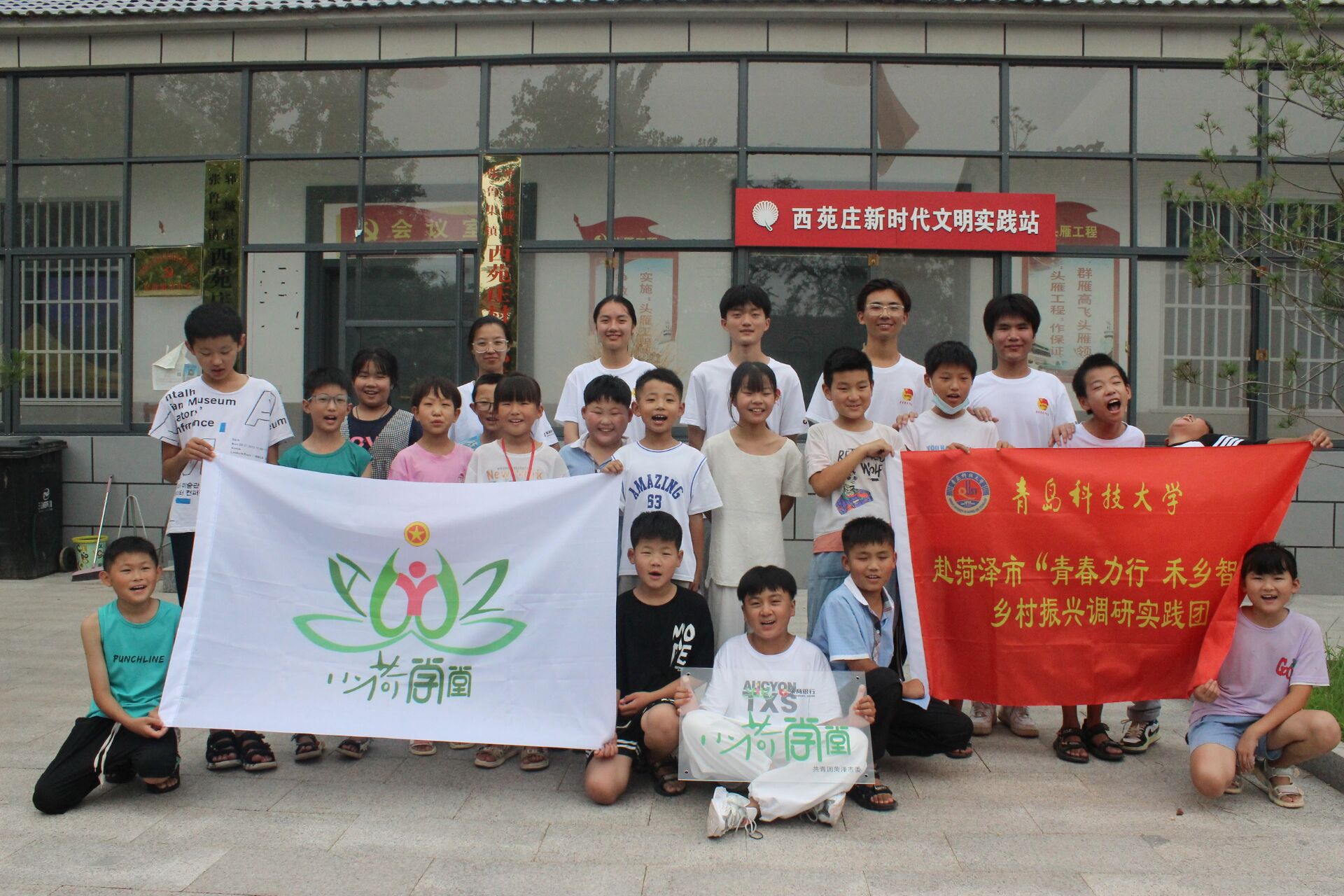 2022年7月12日,来自pg电子官方网站“青春力行,禾乡智兴”支教队的队员们在张鲁集西苑村新时代文明实践站开启了“小荷学堂”支教之旅。