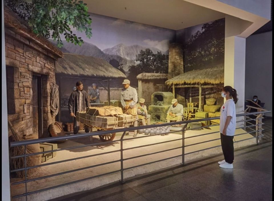 随后,团队成员来到沂蒙精神纪念馆。团队成员们沿着参观路线,仔细阅读一个个革命故事,慢慢感受一件件革命遗物。一页页泛黄的书卷,载着珍贵的历史,跨越时空,铺陈开来,讲述着沂蒙儿女支援前线,无私奉献的革命故事。纪念馆里深度还原了革命战争年代的历史画面,漫步其中,仿佛置身革命的战场,耳边是响起的号角,身边是一个个奋不顾身、勇往直前的革命先辈。通过实地参观革命纪念馆,同学们对沂蒙故事有了更多的了解,对沂蒙精神有了更深的感悟。