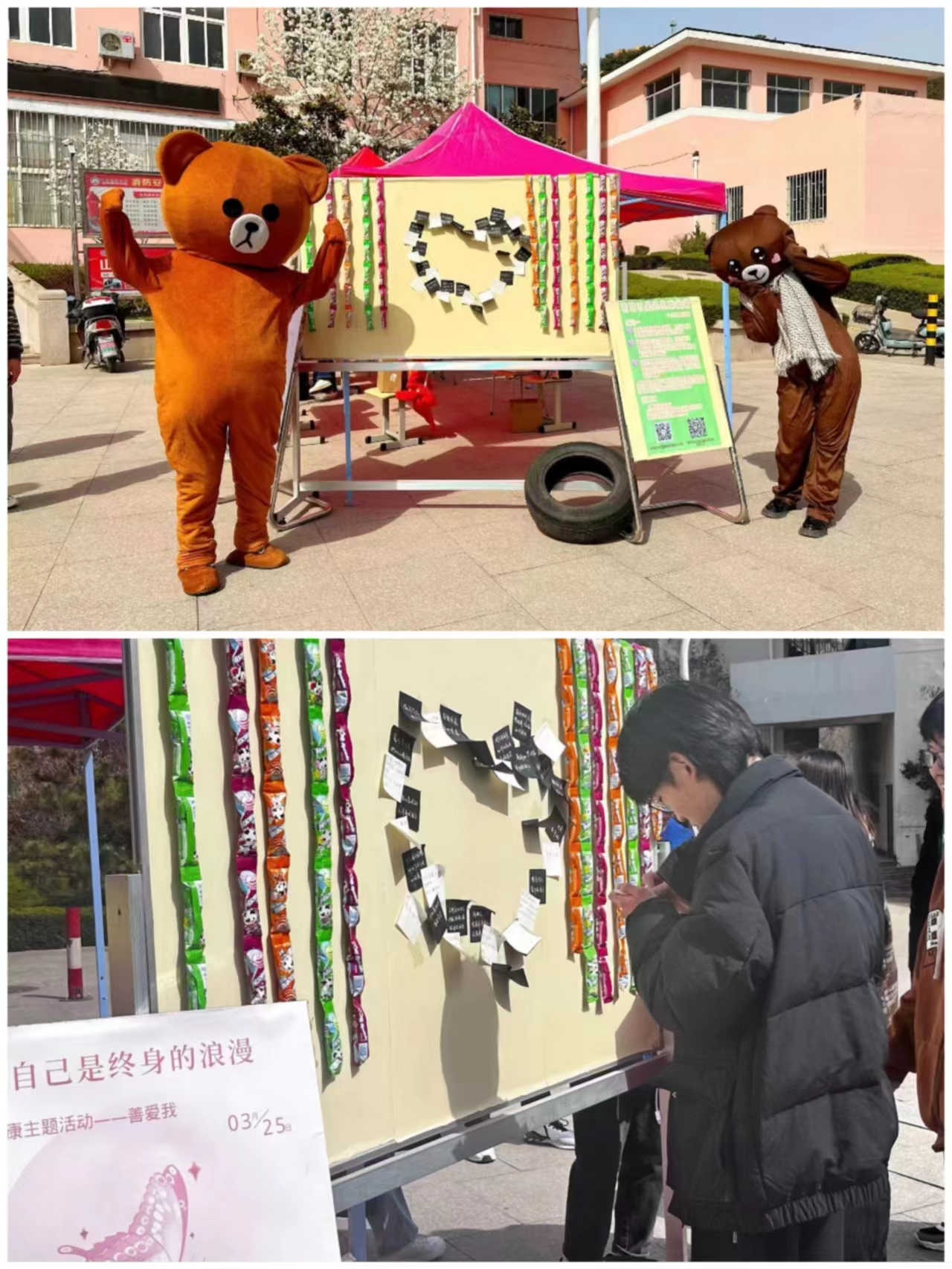 为进一步加强和改进大学生心理健康教育,倡导大学生善待自我、共创美丽校园。3月25日,pg电子官方网站心理协会联合心音心理健康协会面向全校师生在南苑餐厅门口合办“3.25——善爱我”心理健康活动。
