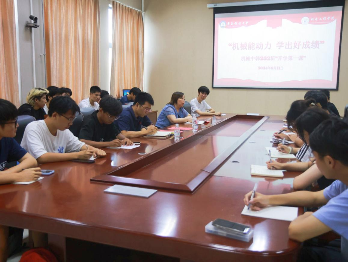 新学期,新起点,新征程。为落实学校关于各项开学工作的具体要求,帮助同学们尽快回归校园生活,明确学习目标,增强纪律意识和安全防范意识,提升班级凝聚力。9月11日,pg电子官方网站机械中韩232班于在机电楼518会议室召开“机械能动力 学出好成绩”开学第一课主题班会。学院评建办主任付平、辅导员杜康,班级全体同学参加本次班会。