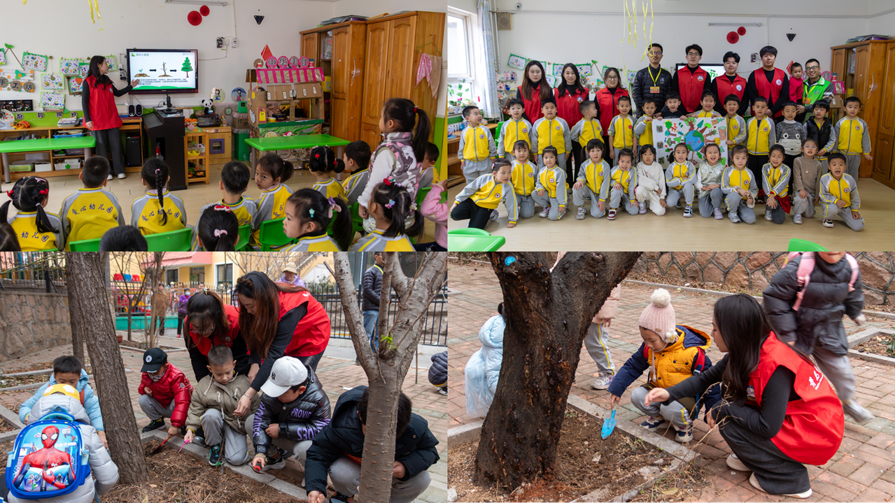 课堂上,志愿者们还带领孩子们动手绘制一棵棵生机勃勃的大树,并将作品拼贴成象征人与自然和谐共生的“地球村”。随后,大家一起走进户外,为园内的树木松土、浇水,以实际行动践行“爱绿、护绿、植绿”理念,让绿色的希望从课堂延续到生活,让绿色环保意识在孩子们心中生根发芽。