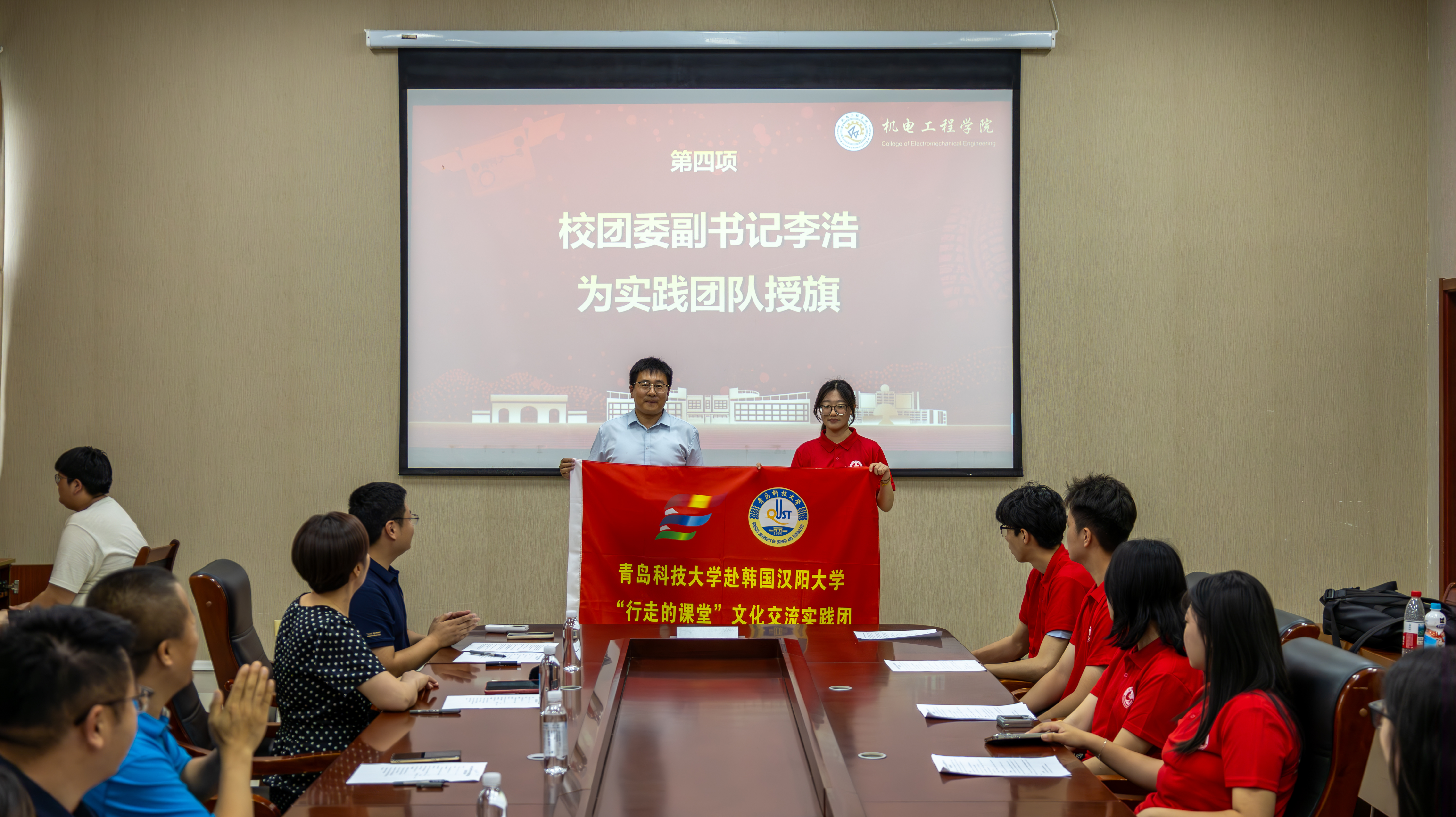 7月15日,pg电子官方网站2025年赴韩国社会实践出征仪式在D3-518会议室举行。校团委副书记李浩、学院党委副书记兼副院长杨小明、国际交流合作处涉外办学管理科科长邱南南、学院团委辅导员老师及学生代表参加活动。