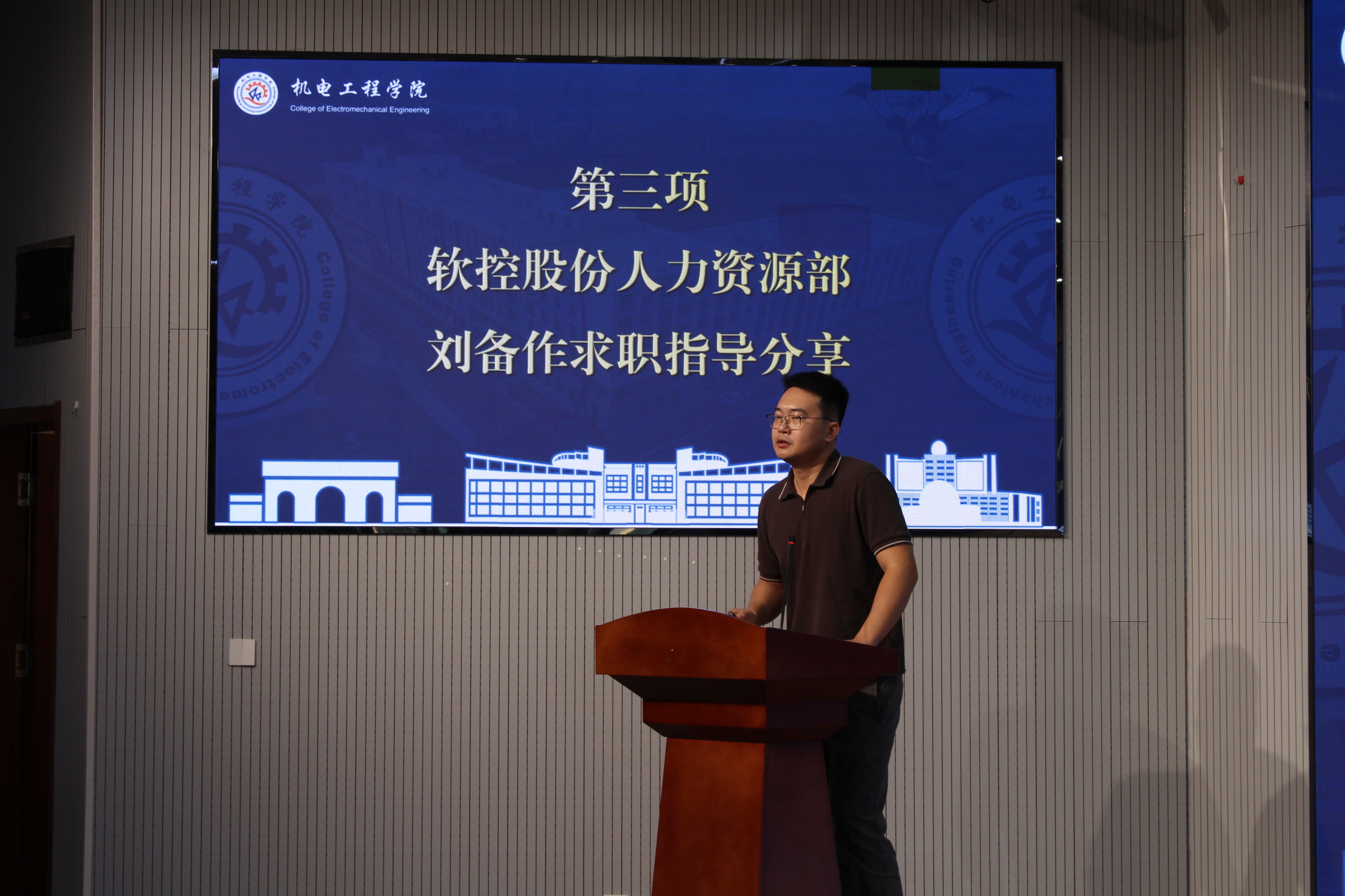 9月9日,pg电子官方网站在机电楼530会议室举行2026届研究生就业开学第一课。学校就业指导中心副主任孙一君、软控股份有限公司人力资源部刘备受邀作专题分享。学院党委副书记杨小明主持会议,2026届研究生学生骨干近百人参加就业开学第一课。