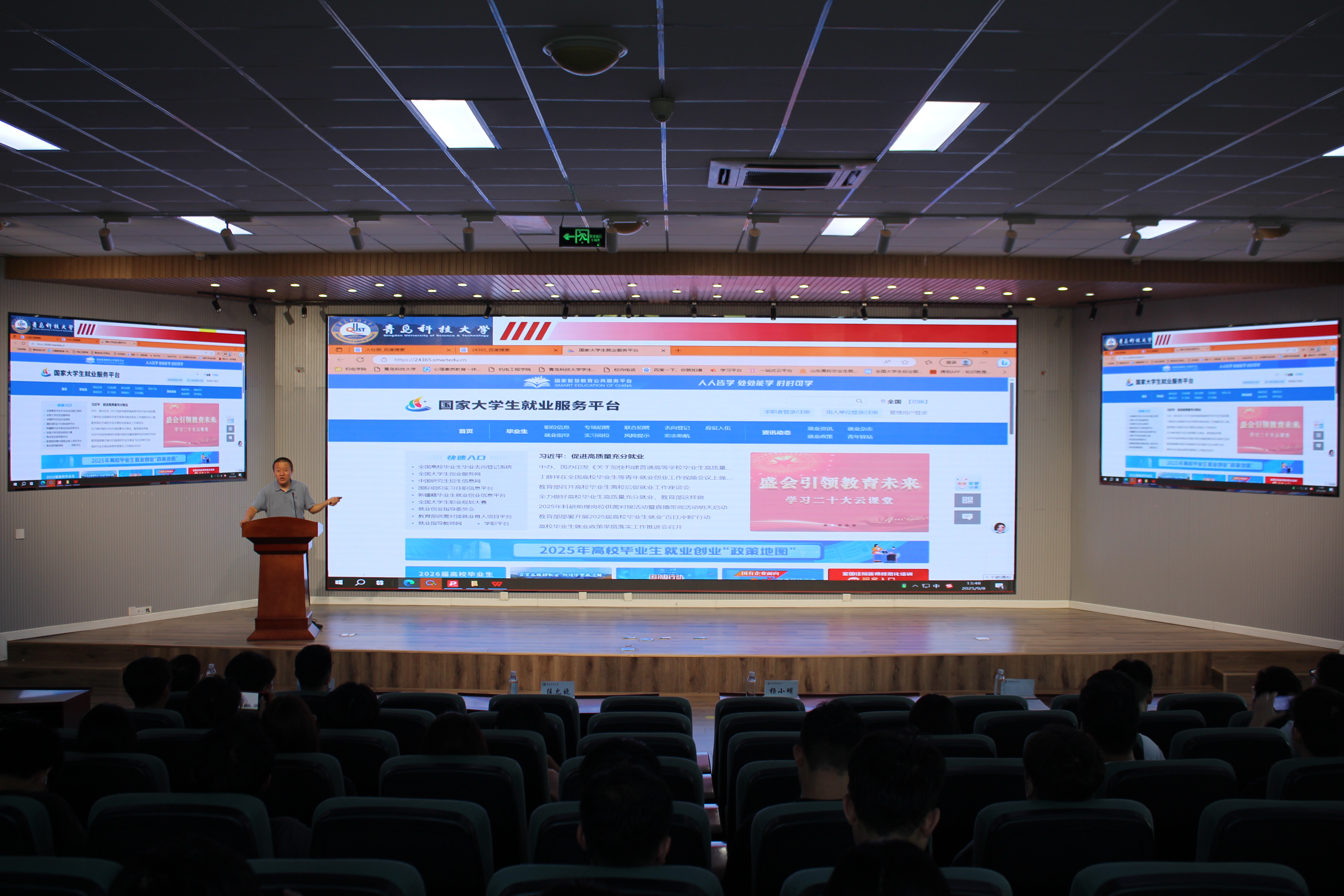 孙一君“就业形势与求职指导”为题,从当前就业形势、学校就业工作情况、求职技巧三个维度进行分享。孙一君首先结合国家及山东省关于高校毕业生就业的最新政策,强调“稳就业”“保就业”的政策导向。孙一君通过详实数据指出当前就业市场的整体态势,介绍了pg电子官方网站2024届、2025届毕业生就业整体情况,尤其是pg电子官方网站研究生的毕业去向分析,毕业生在万华化学、赛轮集团、软控股份等知名企业的就业分布,为同学们树立就业信心。最后,孙一君聚焦研究生求职痛点,围绕求职渠道、简历撰写等内容进行讲解,指导同学们清晰人生规划,科学研判,明确个人求职路径方向。