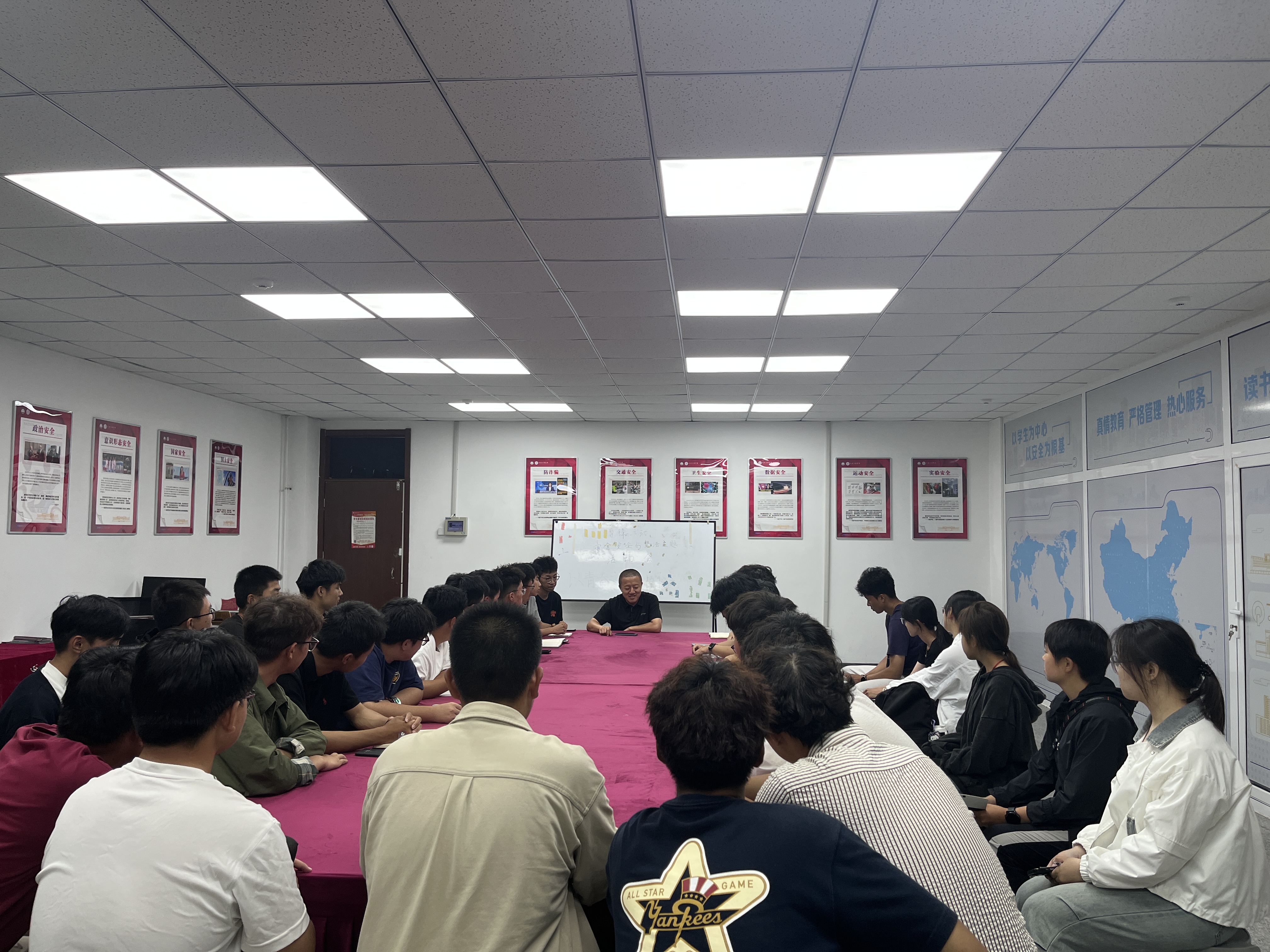 座谈会开始前,与会人员一起参观了“国之栋梁——郭永怀”事迹展览,并一起在宿舍安全宣教室参观,尤其是宿舍安全的相关实物展。据悉,学院将通过多层次、全覆盖的安全卫生宣教工作落实2025秋季学期“安全第一课”“开学第一课”。