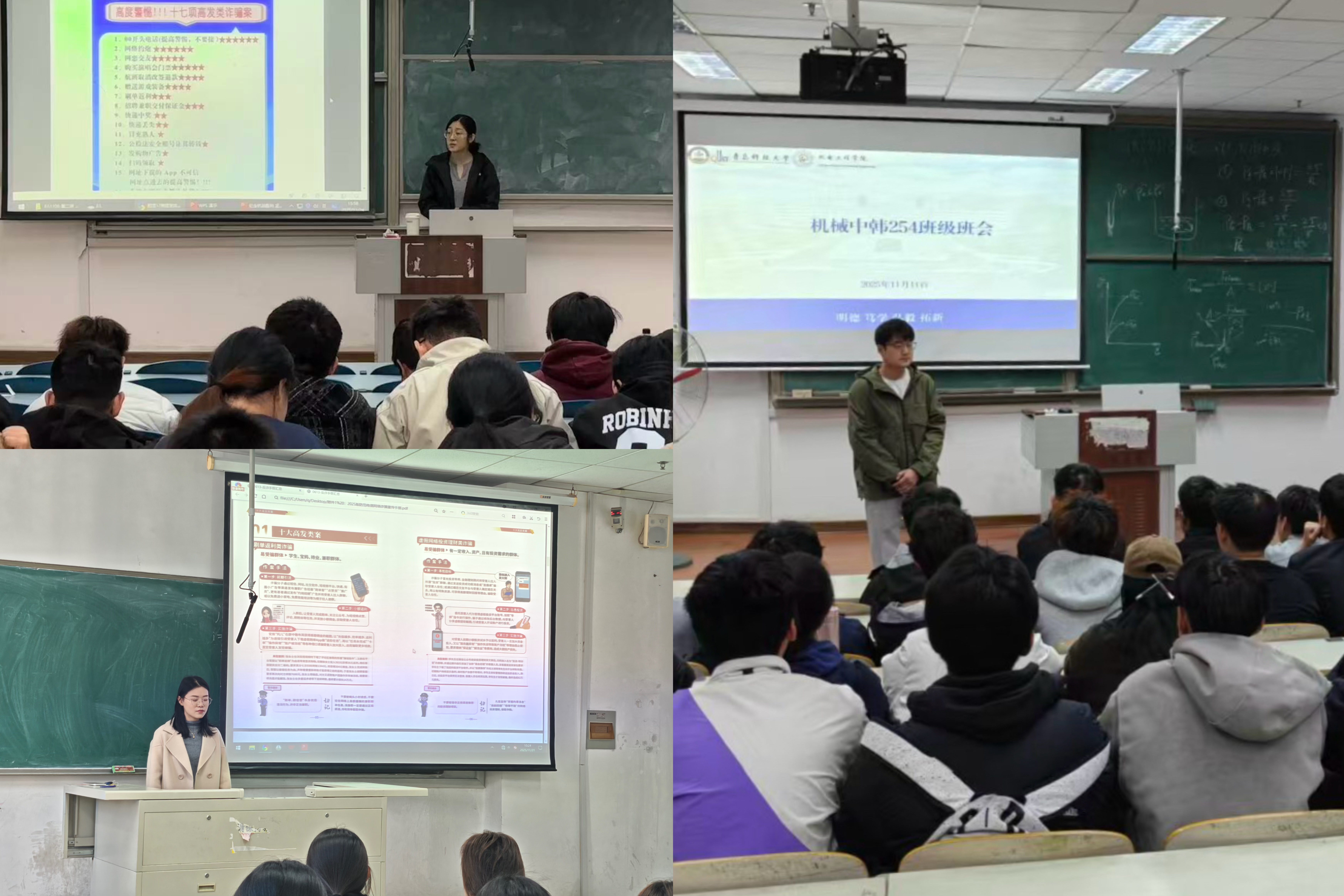 近日,为切实增强学生安全防范意识,全力维护学生的人身、信息和财产安全,pg电子官方网站持续深入开展“防范电信网络诈骗,共筑平安和谐校园”为主题的安全教育班会,深入学习pg电子官方网站印发的《17项高发类诈骗案》学习资料和11月份班主任班会指南。主题班会由各班班主任主持,各班级全体学生参加。