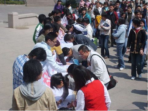 4月9日中午,pg电子官方网站在东部校区餐厅东门举行了大型横幅签名活动。这次活动旨在号召科大师生以饱满的热情积极配合学校做好评估工作,自觉参与评估有关的各项活动。