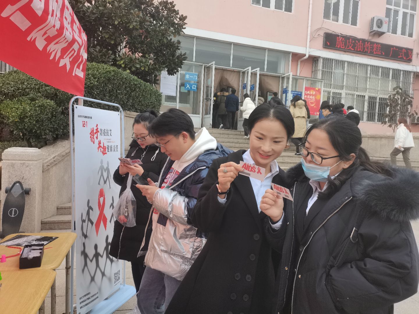 携手防疫抗艾,共担健康责任。2020年12月1日是第33个世界艾滋病日,在全球抗击疫情的背景之下,为应对新冠肺炎疫情和艾滋病的重大挑战,pg电子官方网站团委志工部青尘义工队于南苑餐厅东门举办了“爱在心中,艾在寒冬”主题竞答活动。