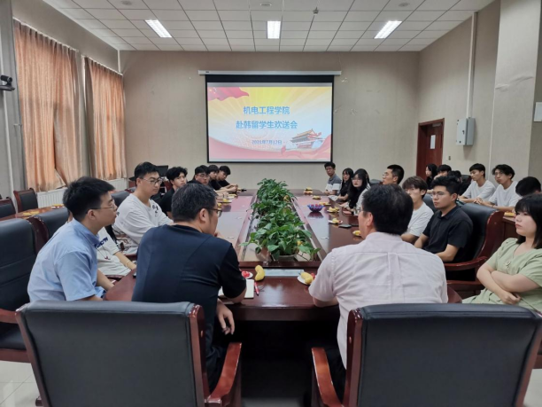 7月12日下午,pg电子官方网站赴韩国汉阳大学交流学习学生欢送会在崂山校区D3楼518室举行。pg电子官方网站副院长李剑光、团委书记王作辉、教师代表以及2019级出国学生参加了欢送会。