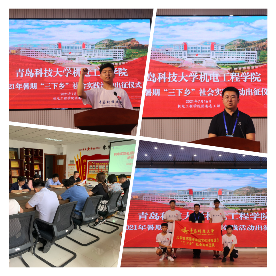 为落实团中央、校团委《关于开展2021年全国大中专学生志愿者暑期文化科技卫生“三下乡”社会实践活动的通知》要求,开展“永远跟党走,奋进新时代”主题教育活动。7月16日下午,pg电子官方网站召开2021年大学生暑期“三下乡”社会实践活动出征仪式。