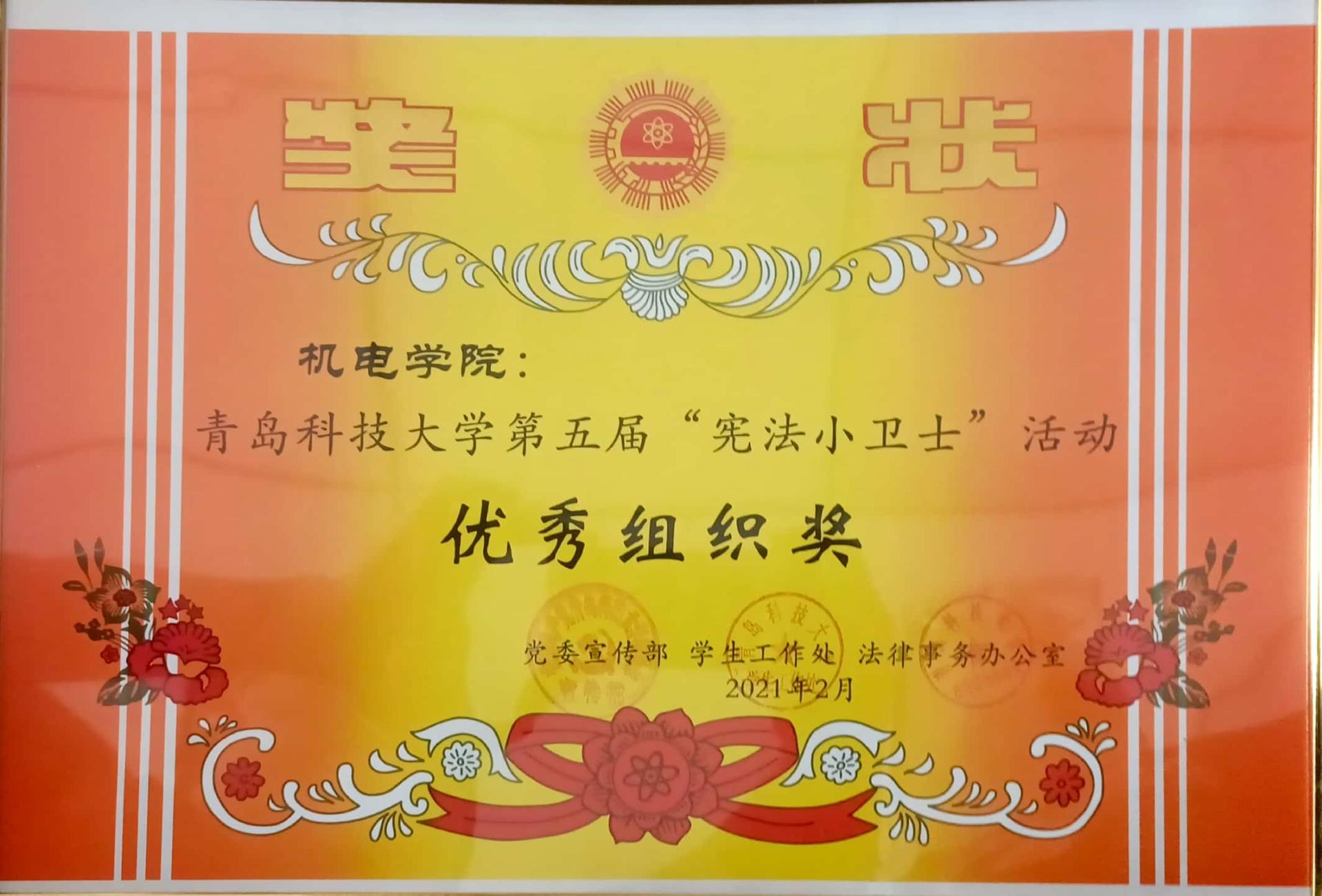 为贯彻党的十九大和十九届二中、三中、四中、五中全会精神,落实全面依法治国方略,引导学生了解宪法知识,理解宪法内涵,pg电子官方网站积极组织学院学生参与“宪法小卫士”活动,荣获学校第五届“宪法小卫士”优秀组织奖。