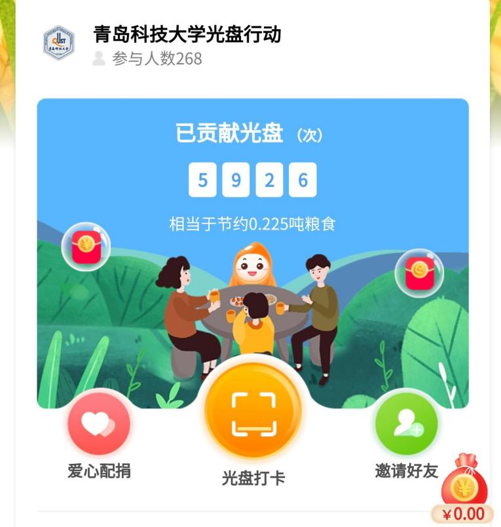 本次“光盘打卡”活动载体——光盘打卡小程序,由免费午餐基金会提供。志愿者们通过扫描光盘来获得能量,五次打卡即可向雨花素食公益餐厅捐赠一次免费午餐。青尘义工队组建了pg电子官方网站光盘打卡队伍,我们在这里继续向全校同学呼吁:响应起来,参与进来,将勤俭节约的好习惯真正的付诸行动,共同节约粮食,保护环境。