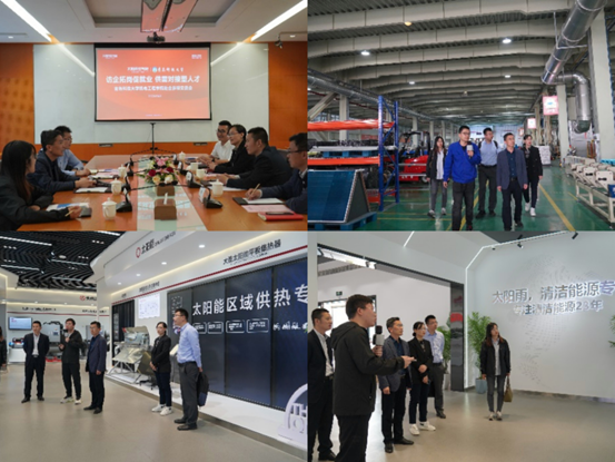 集团人力运营中心总监仰传宝代表公司对肖强一行表示欢迎,陪同实地参观太阳雨清洁热能展厅、实训基地、空气能热泵工厂。