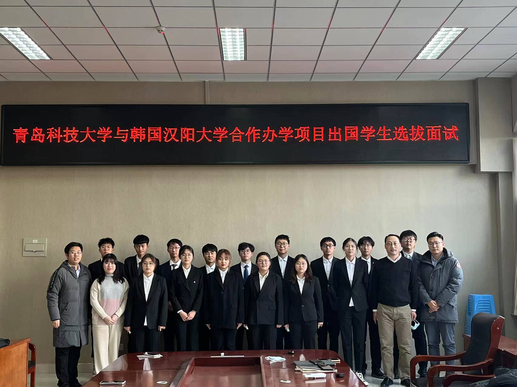 面试前,学院教学院长李剑光给学生们加油鼓劲,祝愿大家都能考试顺利,取得佳绩,并且如愿以偿得到赴韩交流学习的机会。另外,辅导员和合作办学办公室负责人也出席了会议。