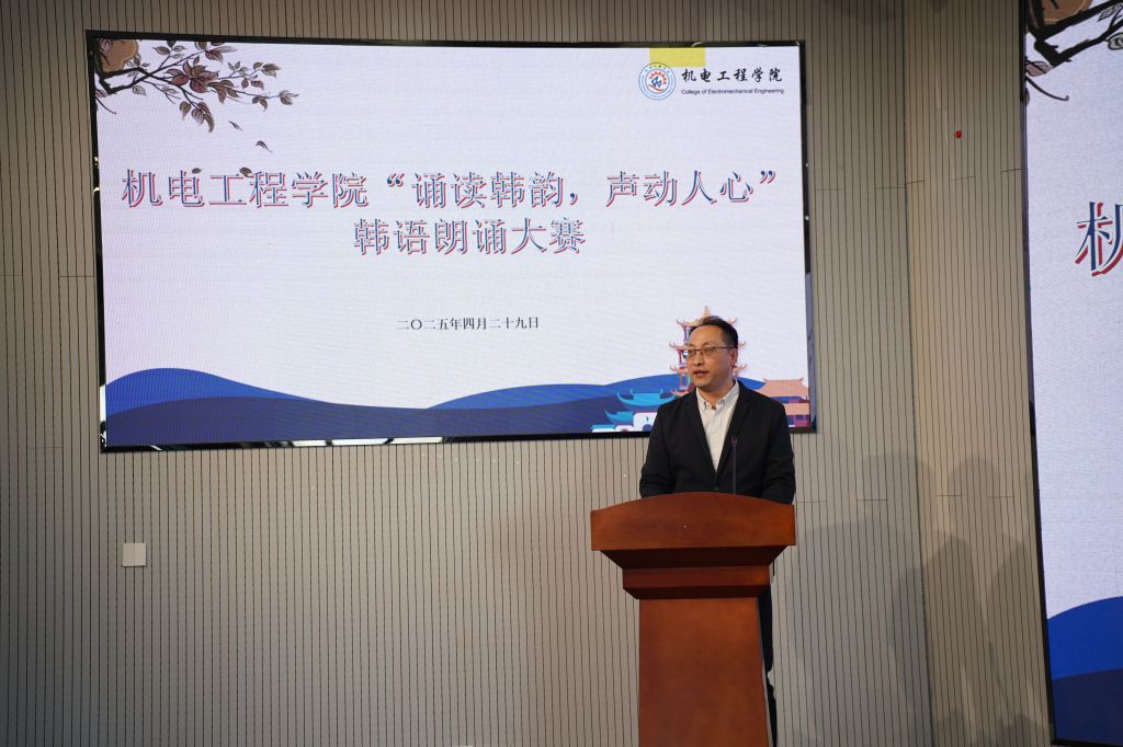 韩韵悠悠耳畔响,诗风缕缕润心田。2025年4月29日下午,pg电子官方网站成功举办“诵读韩韵,声动人心”第一届韩语朗诵大赛。此次大赛旨在提升学生韩语水平,激发韩语学习兴趣,吸引了机械工程(中韩合作办学)专业、材料成型及控制工程(中韩合作办学)专业学生的广泛参与。pg电子官方网站副院长李剑光、合作办学办公室主任付平、中韩合作办学师生代表80余人参加此次活动。韩语教师刘雪云、马敏、李静作为本次评委。