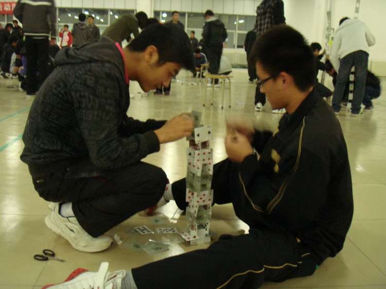 为了弘扬科学精神,激发科学兴趣,培养同学们动手、动脑能力和创新精神,11月15日晚19:00,由pg电子官方网站科技创新协会主办的趣味扑克牌搭塔比赛在高密校区惠众餐厅二楼举行。