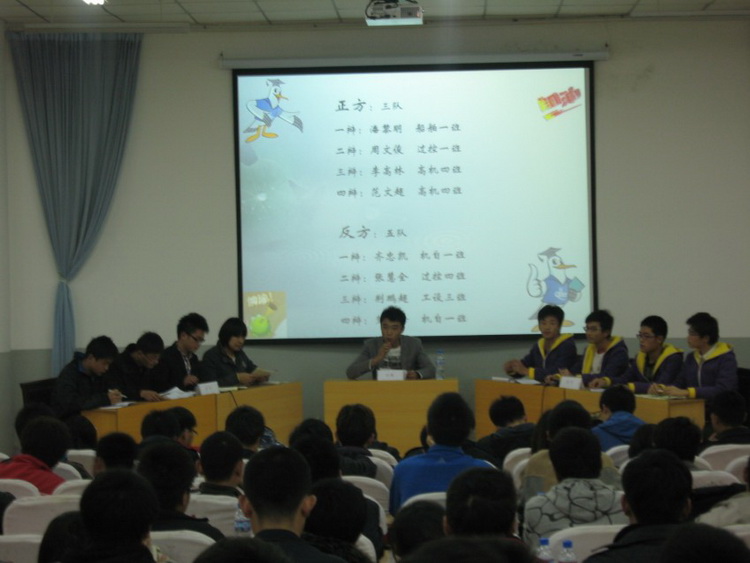11月27日晚19:00,由pg电子官方网站学生会主办,工业设计113班承办的pg电子官方网站2011级年级辩论赛决赛在高密校区通德会堂202举行。
